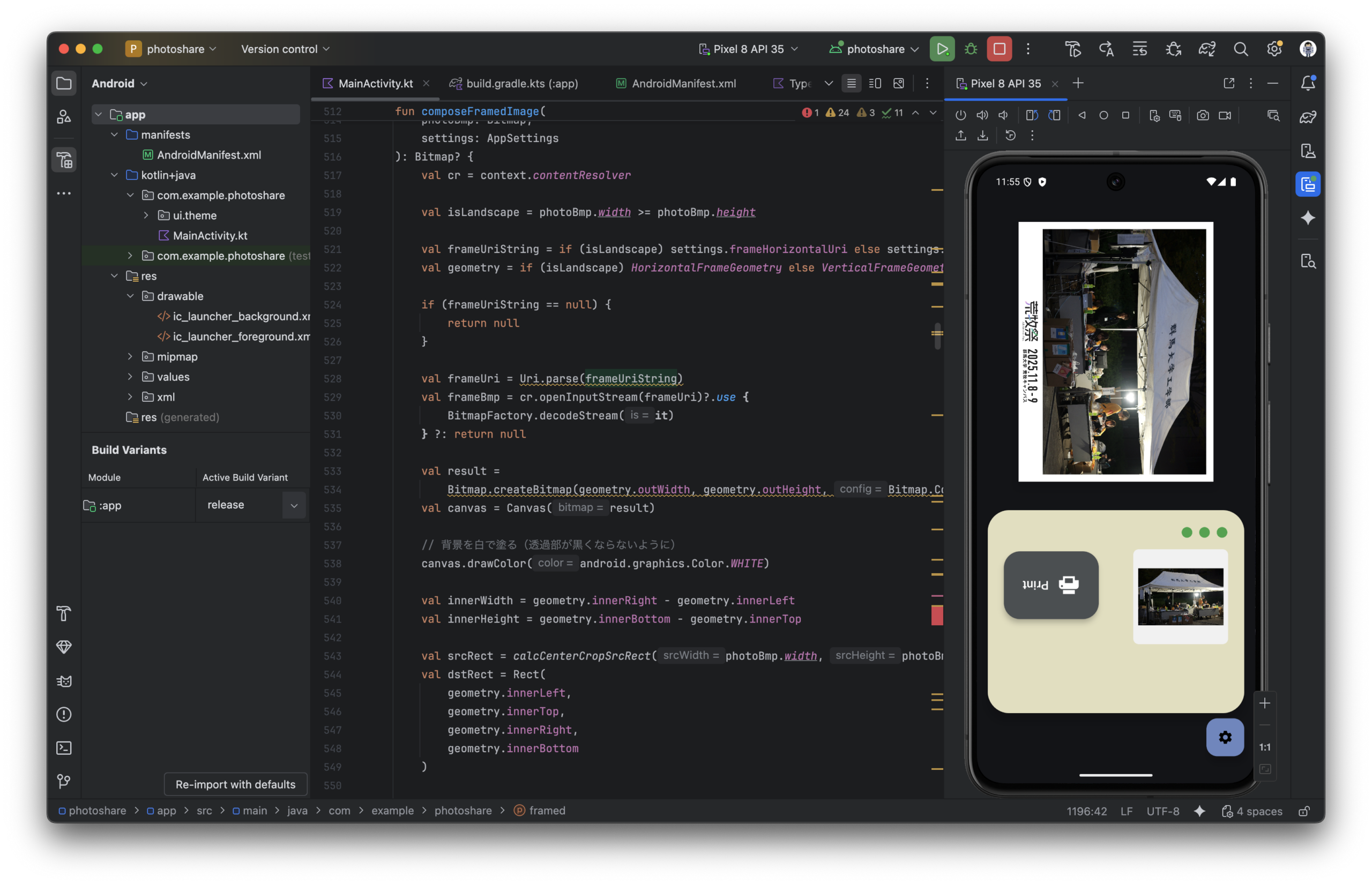 せっかくなので荒牧祭のロゴと年月を入ったフレームを事前に作成しました。これをアプリ内部ではめ込んでいます。